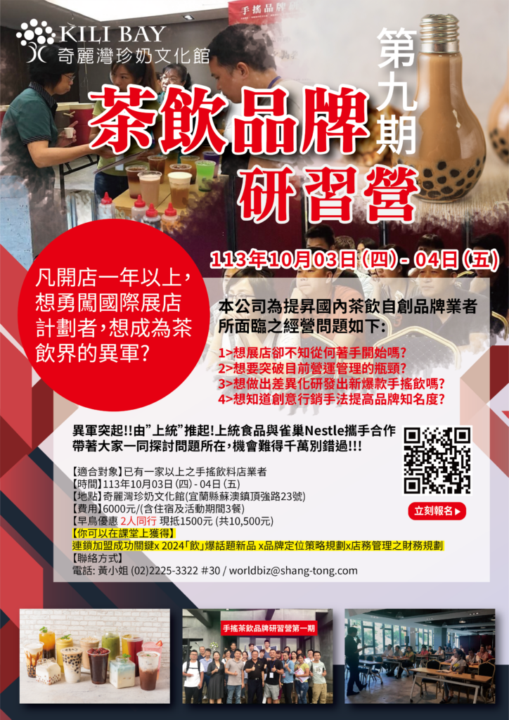有意將手搖店拓展為【連鎖品牌】或【國際品牌】?別錯過業界最超值的全方位實務研習營!